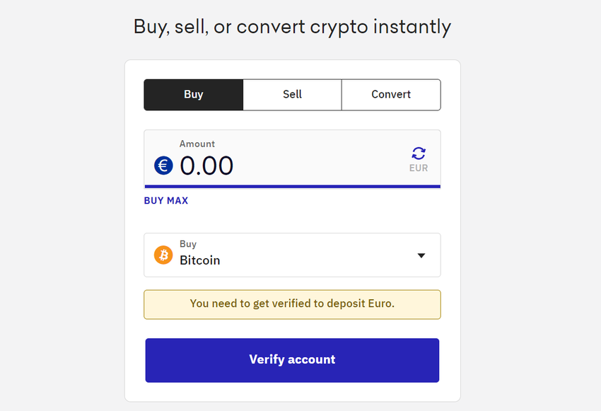 Después de que se verifique su cuenta, vaya a Comprar Cripto> Tarjeta de crédito/débito, y podrá elegir su moneda fiduciaria de preferencia y la cantidad que desea gastar para comprar Bitcoin.