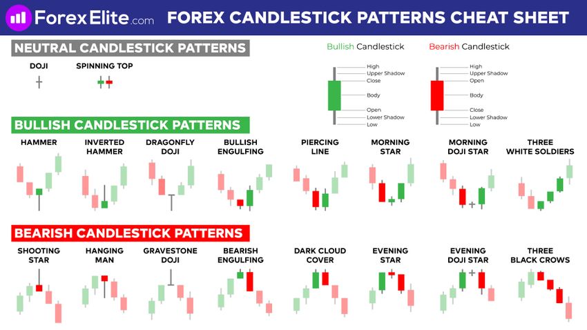 La siguiente infografía muestra algunos de los patrones de velas japonesas más comunes.