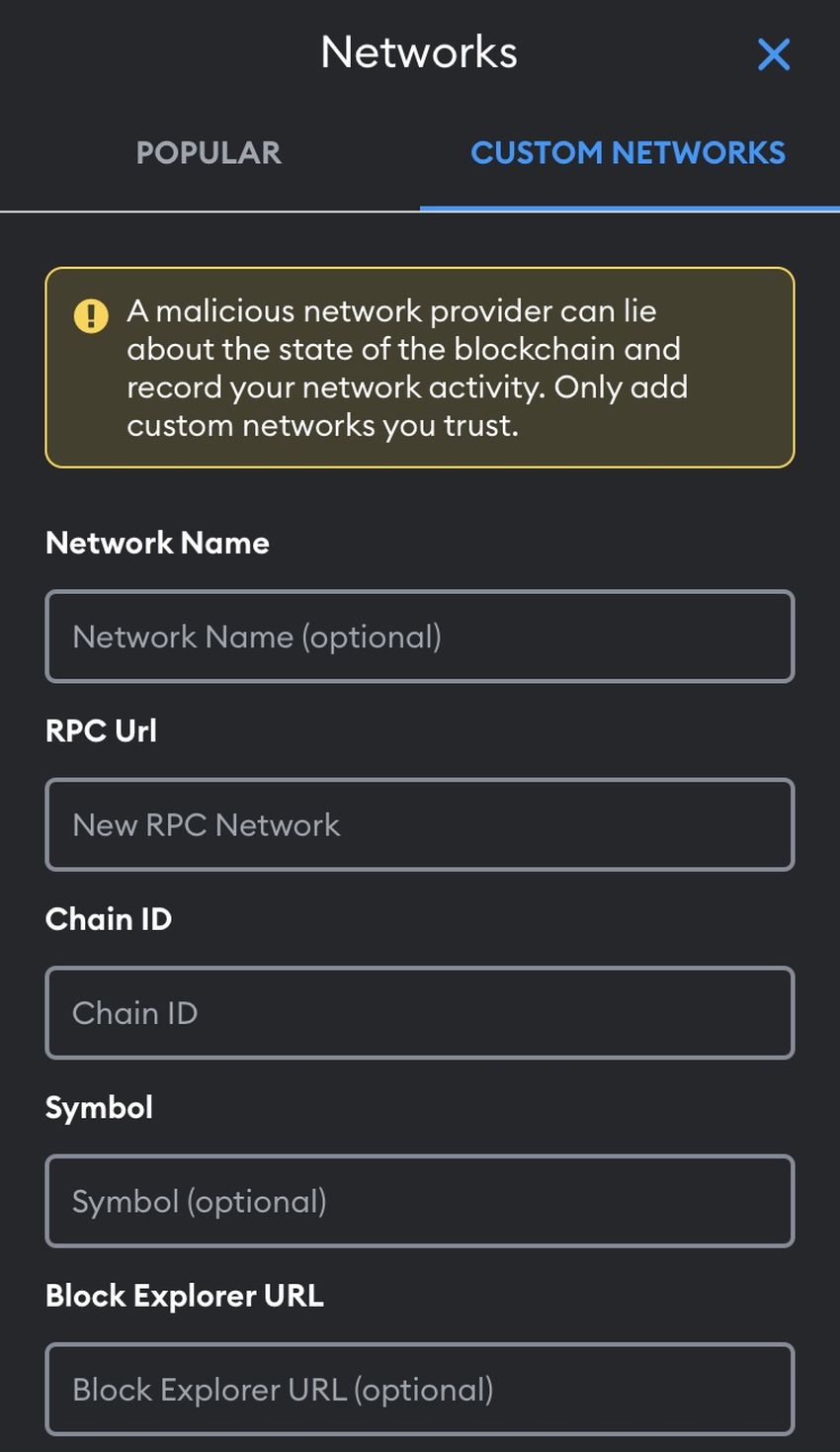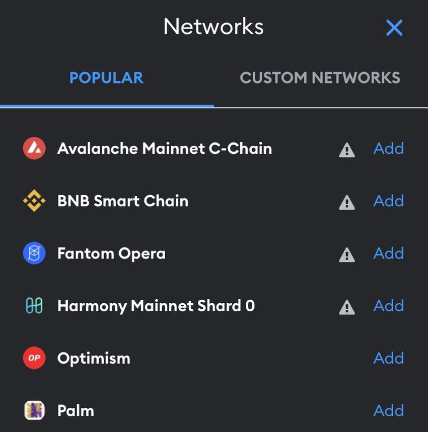 - Si Metis no se encuentra en la lista, haz clic en “Custom Networks”.