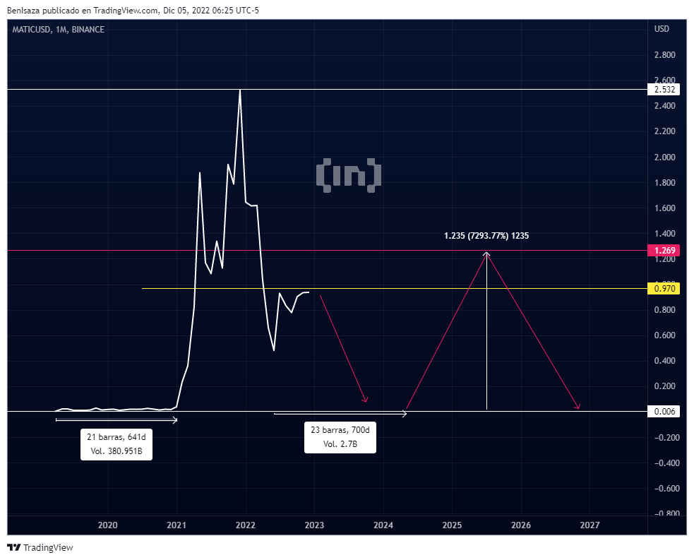 MATIC presenta la formación técnica del tulipán, similar a la vista en LUNA, FTT, SOL y BNB. La dependencia que tiene con Ethereum podría ser un gran detonante de presentar un impulso bajista durante diciembre de 2022 y el primer trimestre del 2023.
