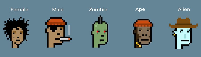 Los CryptoPunks pertenecen fundamentalmente a cinco categorías: mujer, hombre, alienígena, zombi y simio.
