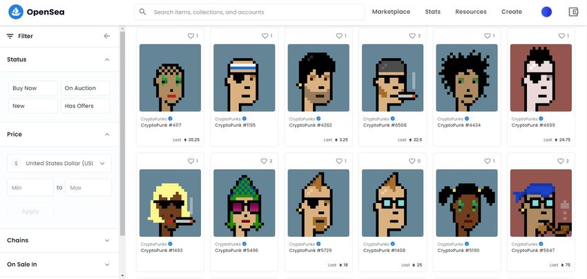 Puede comprar CryptoPunks en la página web oficial de Larva Labs o en marketplaces NFT como OpenSea. Le daremos un repaso de ambos.