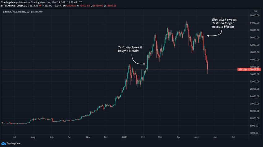Hemos visto tweets individuales en el pasado que afectan drásticamente al mercado. La naturaleza rápida de los eventos en el espacio cripto coincide con la naturaleza viral de las redes sociales. Millones de personas pueden vender BTC si alguien expresa un sentimiento negativo de manera significativa.