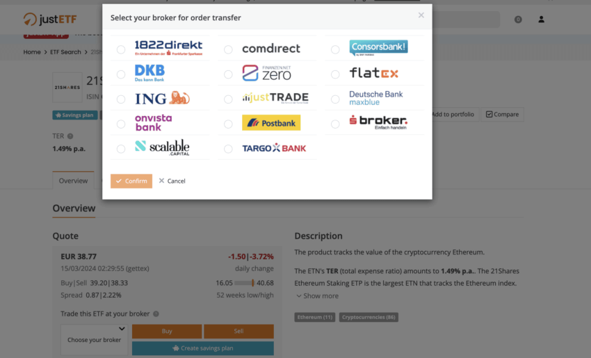 Los ETF globales de Ethereum también pueden negociarse a través de determinados brokers: