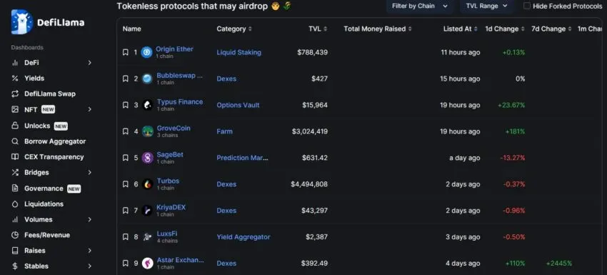 La nueva función de DefiLlama aporta información sobre posibles airdrops en unas 130 redes diferentes. Los usuarios interesados en este tipo de ofertas de tokens pueden efectuar investigaciones y comparativas de forma gratuita y rápida.