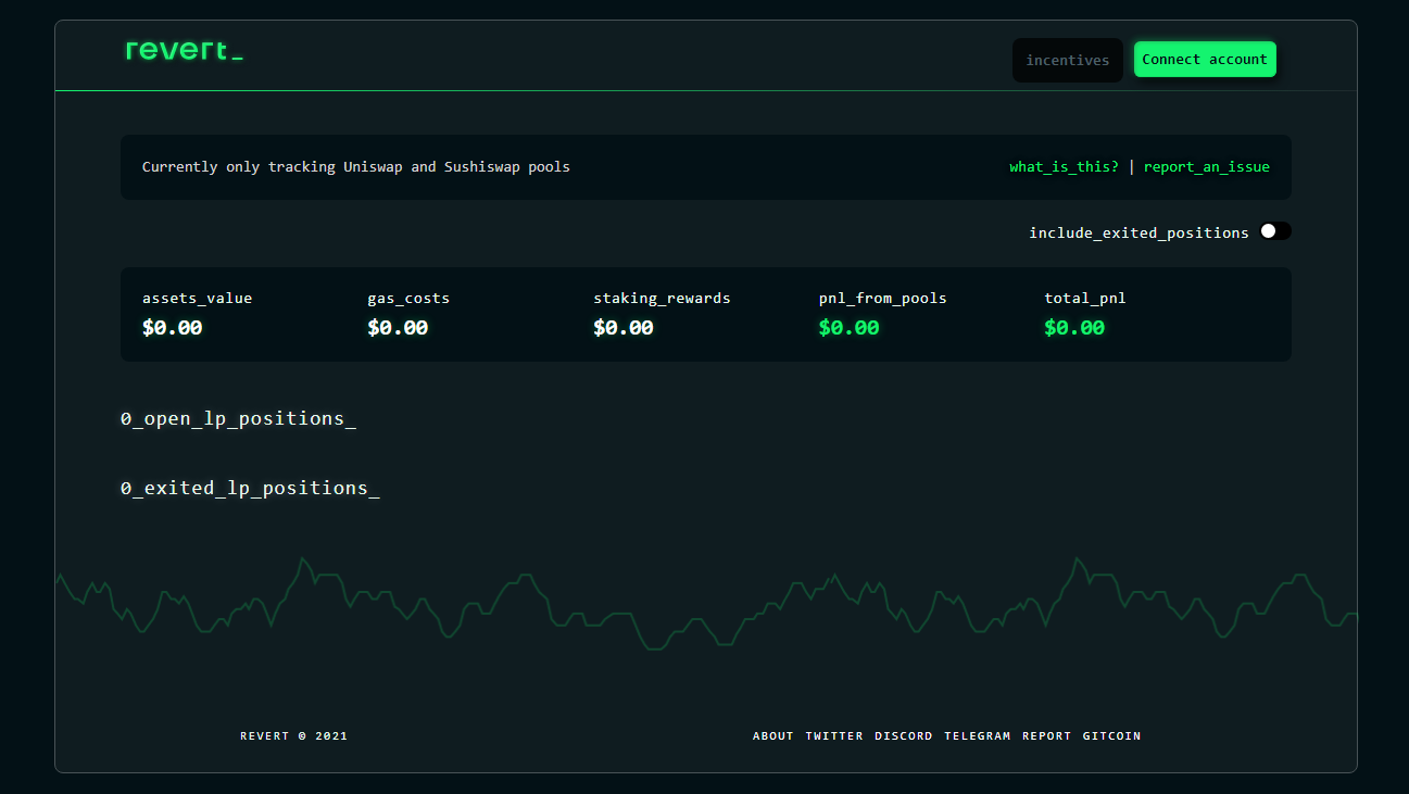 Revert Finance es una potente herramienta de análisis para proveedores de liquidez DeFi. El objetivo de esta herramienta es ayudar a los inversores con la información necesaria y precisa sobre los pools de liquidez en los DEX UniSwap (V2 y V3) y SushiSwap.