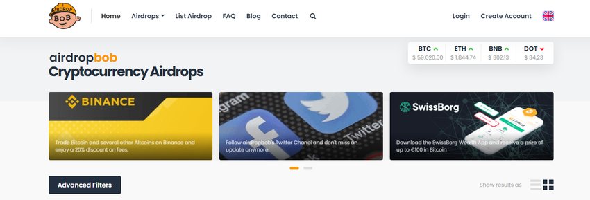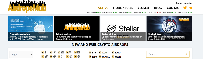 AirdropsMob tiene una excelente función de búsqueda y filtrado que le permite rastrear los airdrops por valor, su listado en CoinMarketCap, para que pueda verificar si es legítimo, la fecha de finalización del airdrop, el nombre y la calificación. Su utilidad no termina ahí. Con tantos airdrops para elegir, el filtrado por requisitos y plataforma es otro ahorro de tiempo.
