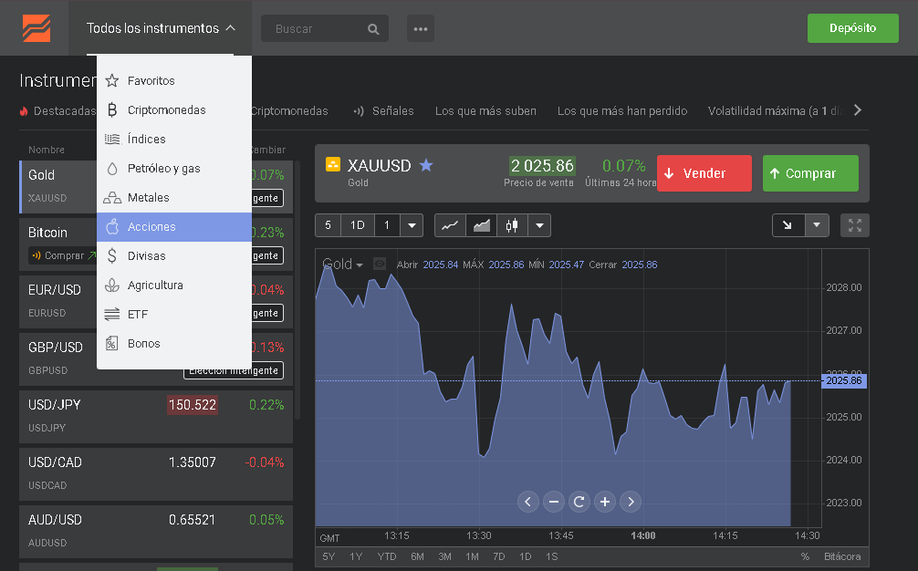 2. Selecciona “Acciones” en el menú desplegable en la parte superior izquierda.