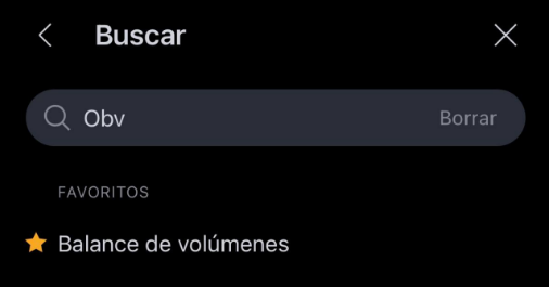 - Escribe “On-Balance Volume” o “Balance de volúmenes”.