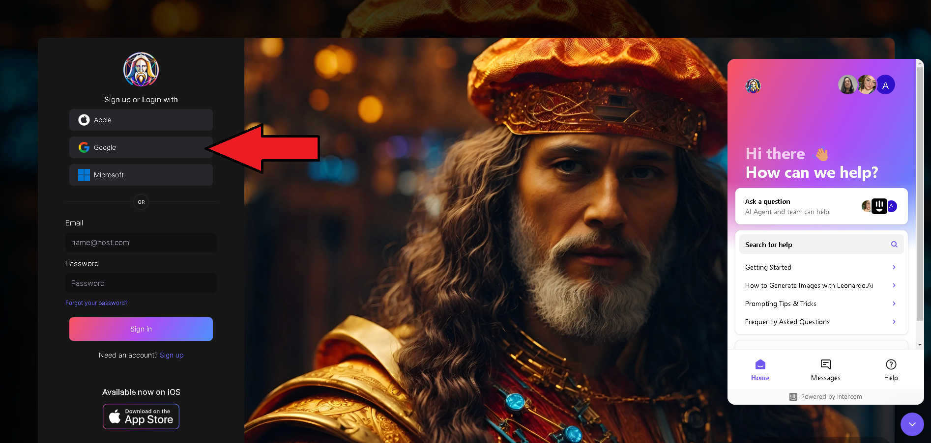 Paso 1. Accede a la web de Leonardo AI y haz clic en “Launch App” o “Get Started”.