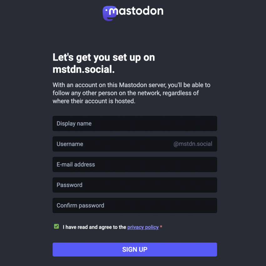 - En este ejemplo, comenzaremos creando una cuenta en mstdn.social, un servidor general.