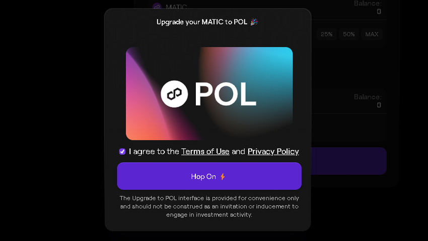 La migración a POL para los holders de MATIC en Ethereum es manual. Es necesario acceder a Polygon Portal Interface, hacer clic en “Hop On” y conectar un monedero. El proceso es sencillo: se indica la cantidad de MATIC a cambiar y se confirma la transacción (pagando las comisiones asociadas).