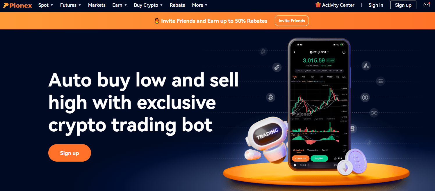 Pionex existe desde hace tiempo. Este exchange cuenta con numerosos bots de trading automatizados con comisiones de negociación bajas para creadores y tomadores. También agrega liquidez de dos bolsas populares y tiene licencia para operar en EE.UU. y Singapur.