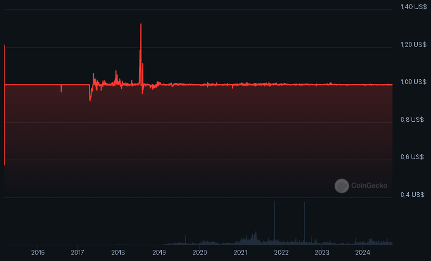 Con una capitalización de 119 mil millones de dólares, USDT es la tercera criptomoneda más grande del mercado cripto. Su uso como token estable supera holgadamente a cualquier otra opción, principalmente por su antigüedad y disponibilidad en multitud de exchanges, plataformas, medios de pago y monederos.