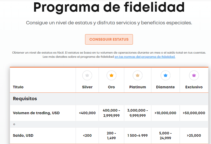 Una de las grandes ventajas que encontramos en Libertex es una bonificación extra, de acuerdo al monto de fondos depositados o volumen de trading realizado en la plataforma. La plataforma posee 5 niveles (Silver, Oro, Platinum, Diamante o Exclusivo) de acuerdo a los fondos de operación. A mayor nivel, la plataforma ofrece al cliente más funcionalidades y una atención al cliente más personalizada.