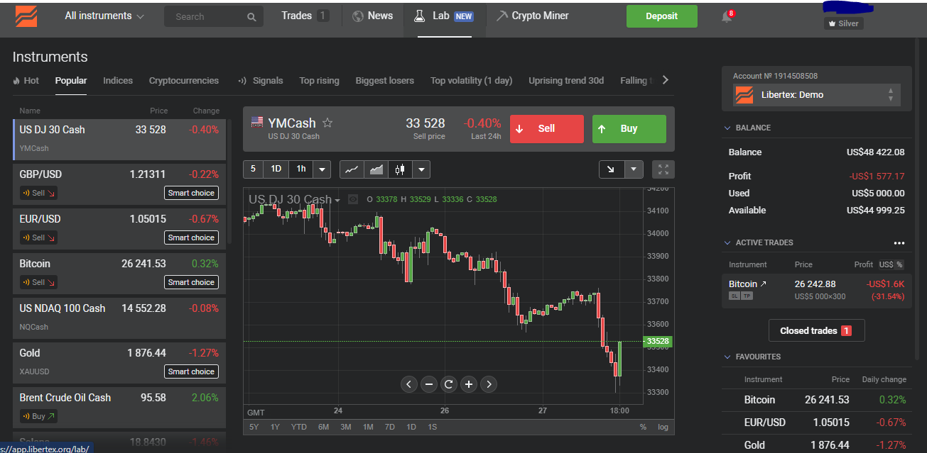 Si estás comenzando en el trading y deseas una plataforma donde practicar diferentes estrategias de trading y cometer errores sin perder dinero, Libertex te lo permite. Esto es porque posee una cuenta de demo para todos sus clientes, sin siquiera haber depositado fondos. La misma la puedes reiniciar si te quedas sin fondos.