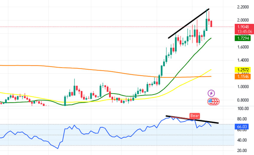 Las previsiones de esta criptomoneda son optimistas, pero cabe destacar la resistencia que parece haberse formado por debajo de los 2 dólares. Además, en la gráfica diaria, se observa una clara divergencia bajista entre el precio y el RSI, lo que podría enviar la cotización por debajo del dólar y medio.