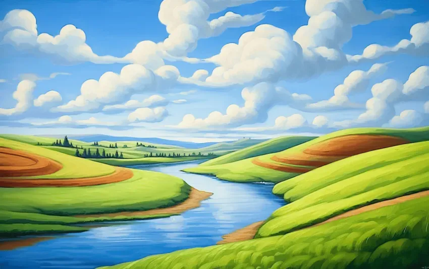 Vista la pericia con imágenes de personas y animales, quisimos comprobar si se le darían bien los paisajes. Le pedimos a ChatGPT un wallpaper con praderas verdes y aguas azules, dejando el estilo a su elección: