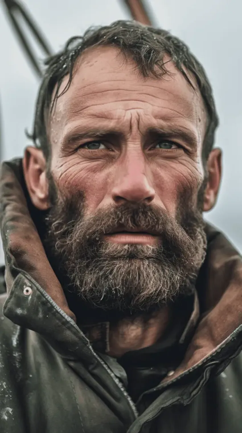 A portrait of a rugged sailor at sea, weather-beaten face, staring into the distance. Classic film grain effect, shot on Leica M lens, Depth of Field, DOF, Shutter Speed 1/500, F/5.6, White Balance, 32k, film grain, 4K. –ar 9:16 –s 600 –quality 5.
