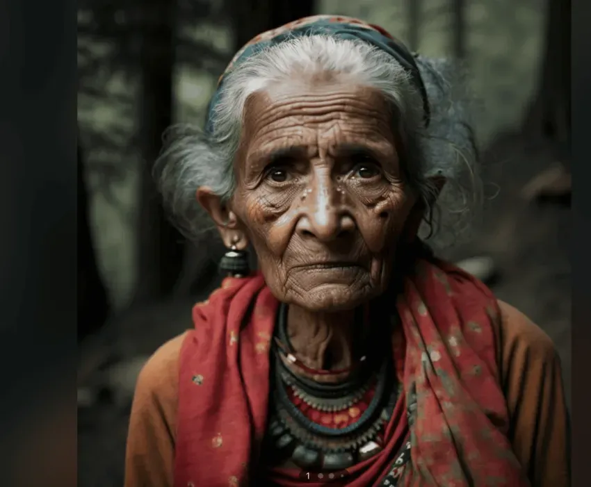 Portrait of Indian village woman at a gathering in the forests of Himachal Pradesh, Cinematic, Photoshoot, Shot on 25mm lens, Depth of Field, Tilt Blur, Shutter Speed 1/1000, F/22, White Balance, 32k, Super-Resolution, Pro Photo RGB, Half rear Lighting, Backlight, Dramatic Lighting, Incandescent, Soft Lighting, Volumetric, Conte-Jour, Global Illumination, Screen Space Global Illumination, Scattering, Shadows, Rough, Shimmering, Lumen Reflections, Screen Space Reflections, Diffraction Grading, Chromatic Aberration, GB Displacement, Scan Lines, Ambient Occlusion, Anti-Aliasing, FKAA, TXAA, RTX, SSAO, OpenGL-Shader’s, Post Processing, Post-Production, Cell Shading, Tone Mapping, CGI, VFX, SFX, insanely detailed and intricate, hyper maximalist, elegant, dynamic pose, photography, volumetric, ultra-detailed, intricate details, super detailed, ambient –uplight –v 4 –q 2