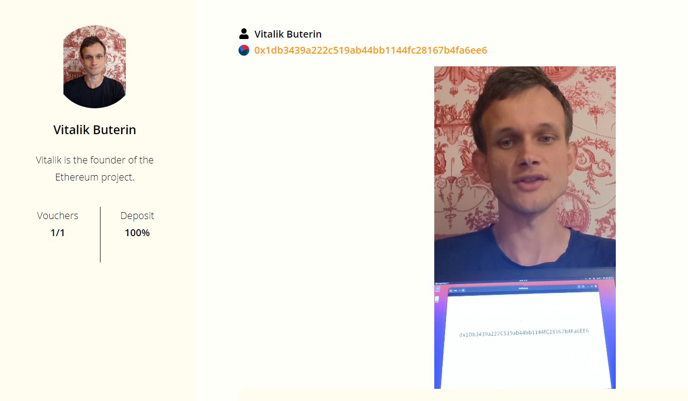 - La persona interesada debe mostrar la dirección de Ethereum (puede ser en un papel escrita a mano, impresa, o en una pantalla).