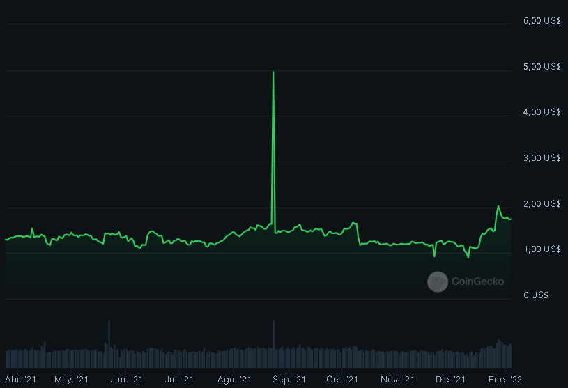 Dependiendo de la fuente, el ATH de XNC se encuentra entre los 4 y 5 dólares. Esta cifra responde a un glitch experimentado en agosto de 2021. Si no tenemos en cuenta este dato, el precio máximo se alcanzó cuatro meses después, en torno a los 2 dólares, nivel desde el cual el precio ha ido cayendo.