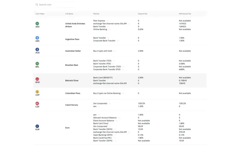 Esta tarifa puede alcanzar el 2% para otros medios de depósito y retiro fíat.