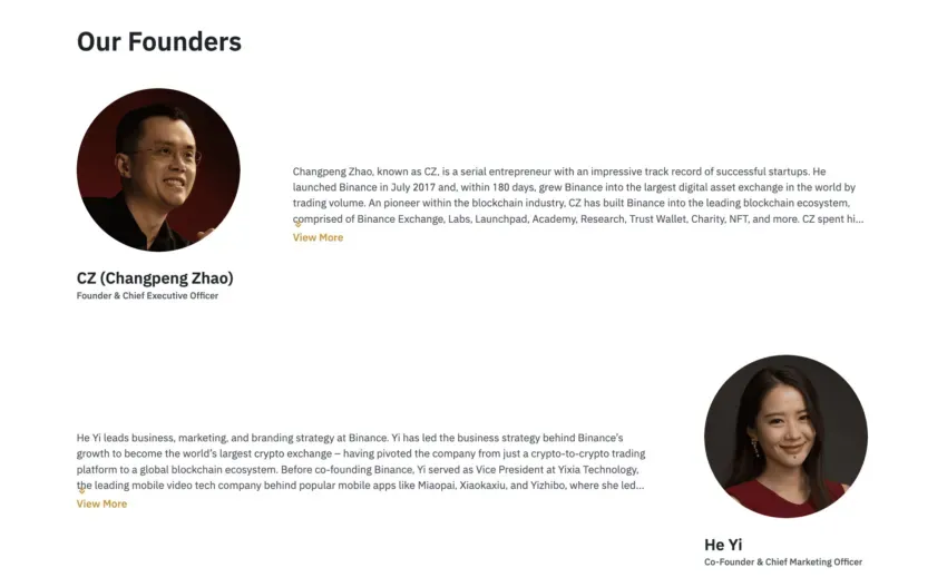 Changpeng Zhao (CZ) ha conseguido convertir su exchange en el espacio de intercambio cripto más popular del mundo. He Yi ha colaborado estrechamente con CZ en el origen y desarrollo de la plataforma, que no ha parado de crecer desde 2017. La cofundadora se forma parte del equipo directivo, especializándose en labores de marketing.