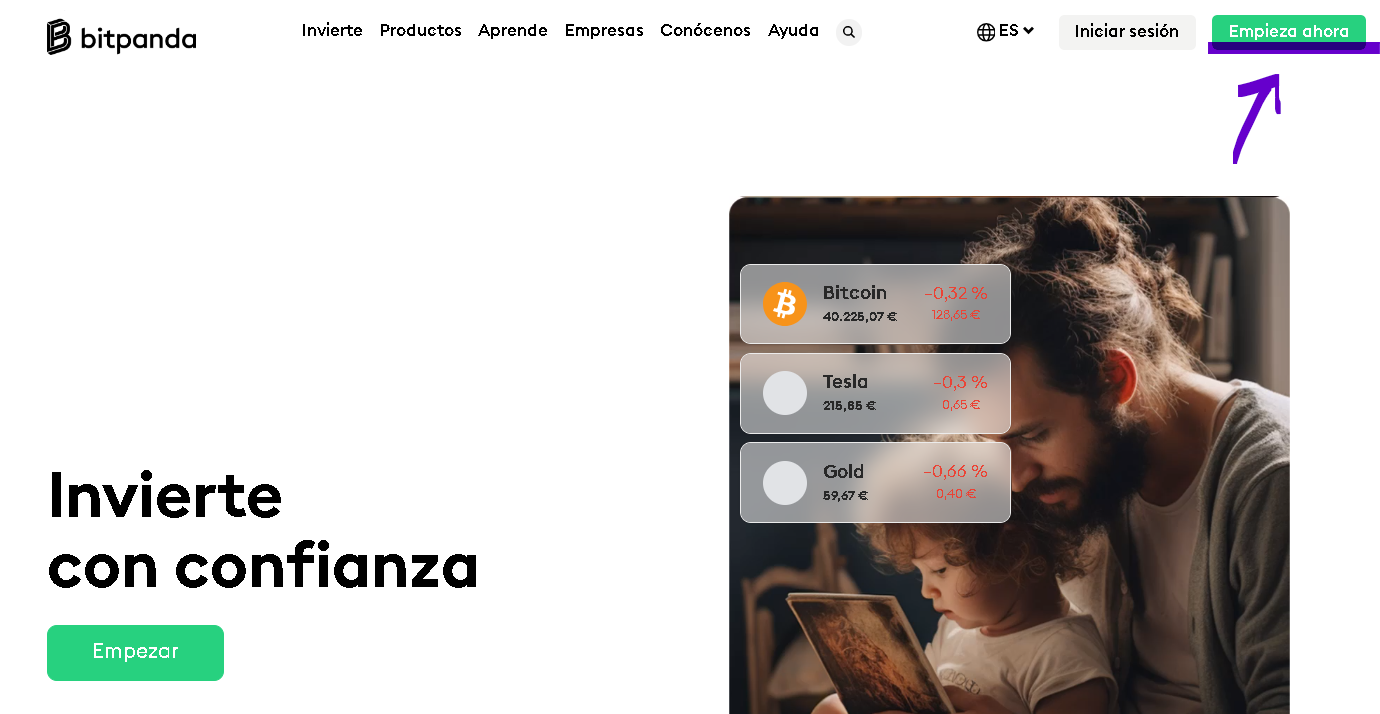 Paso 1. Accede a la web oficial de Bitpanda y haz clic en “Empieza ahora”.