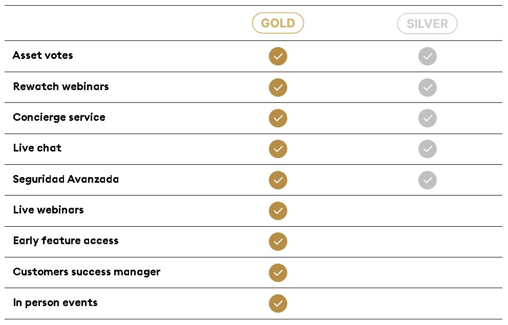 Bitpanda Club es un producto dirigido a usuarios que buscan una experiencia de trading más completa, incluyendo orientación y acceso preferente a lanzamientos. El servicio cuenta con dos niveles (Oro y Plata), que ofrecen ventajas como el acceso a novedades en la plataforma y mejores sistemas de seguridad.