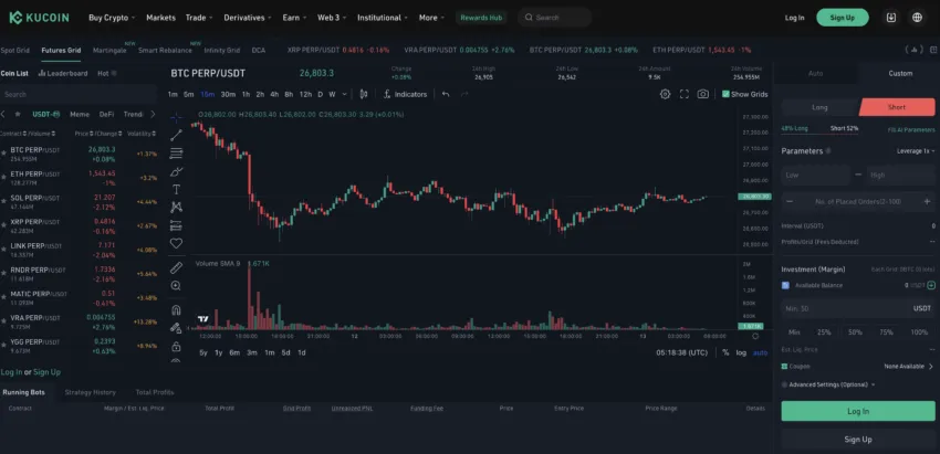 Estos activos se pueden utilizar para hacer trading al contado y operar con derivados de criptomonedas haciendo clic en la opción “Trade” (en la parte superior del sitio web). KuCoin enriquece su oferta de trading con bots, operaciones con margen y apalancamiento financiero.