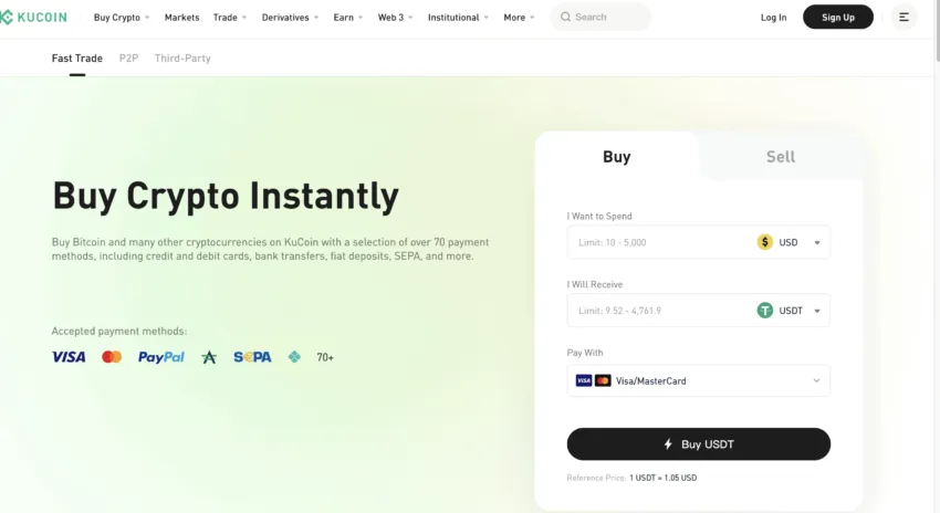 Una de las ventajas de KuCoin es su conjunto de herramientas de trading para implementar una operativa fluida, rápida y variada. Permite la compra de criptomonedas con tarjeta, la ejecución de operaciones P2P, la liquidación de pagos de terceros y el intercambio de activos.