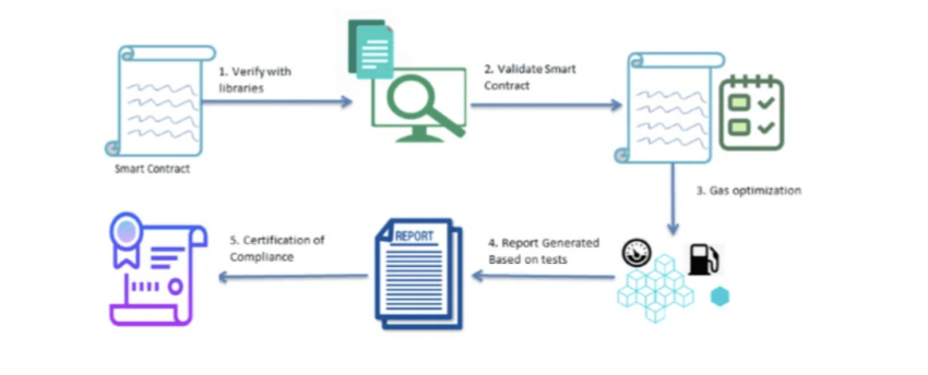 Se trata de un proceso complejo que comprueba la organización del código, no su sintaxis. El objetivo es comprobar si el contrato se ejecuta correctamente.