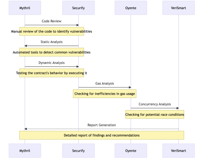 Estas herramientas actúan como una primera barrera de defensa y suelen usarse para identificar las vulnerabilidades más comunes. Una de las herramientas de auditoría más populares es Mythril, utilizada para analizar código y detectar brechas de seguridad.