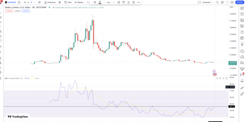 En este punto, podríamos encontrarnos en la mitad del patrón actual, cuya siguiente caída llevaría el precio a mínimos anuales en torno a los 43 centavos de dólar. El próximo movimiento pondría en juego el ATH de XLM en 2027.