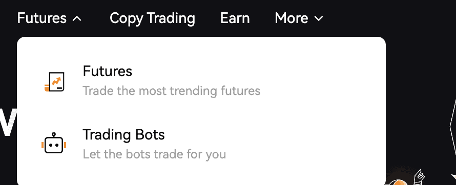 - La opción de futuros es fácilmente visible. Verá los activos disponibles para elegir.