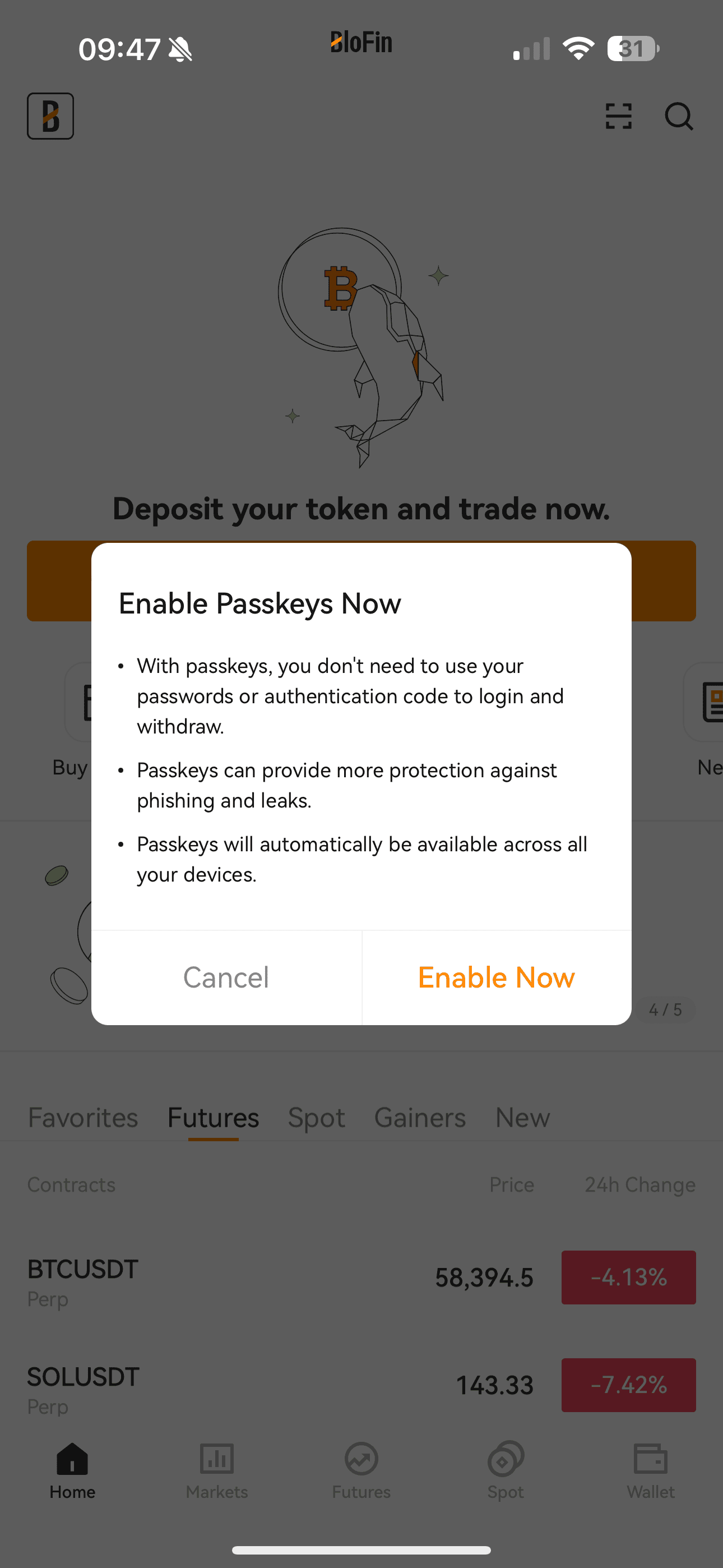 - Una vez dentro, configura los datos biométricos y las passkeys para garantizar una experiencia de trading fluida.