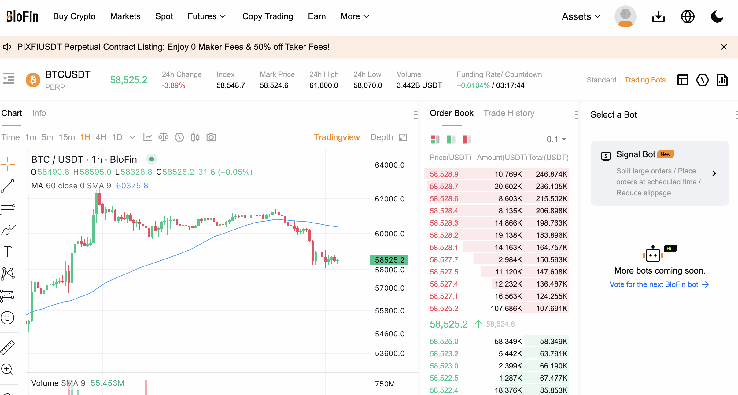 4. Navegue por la interfaz de trading de BloFin