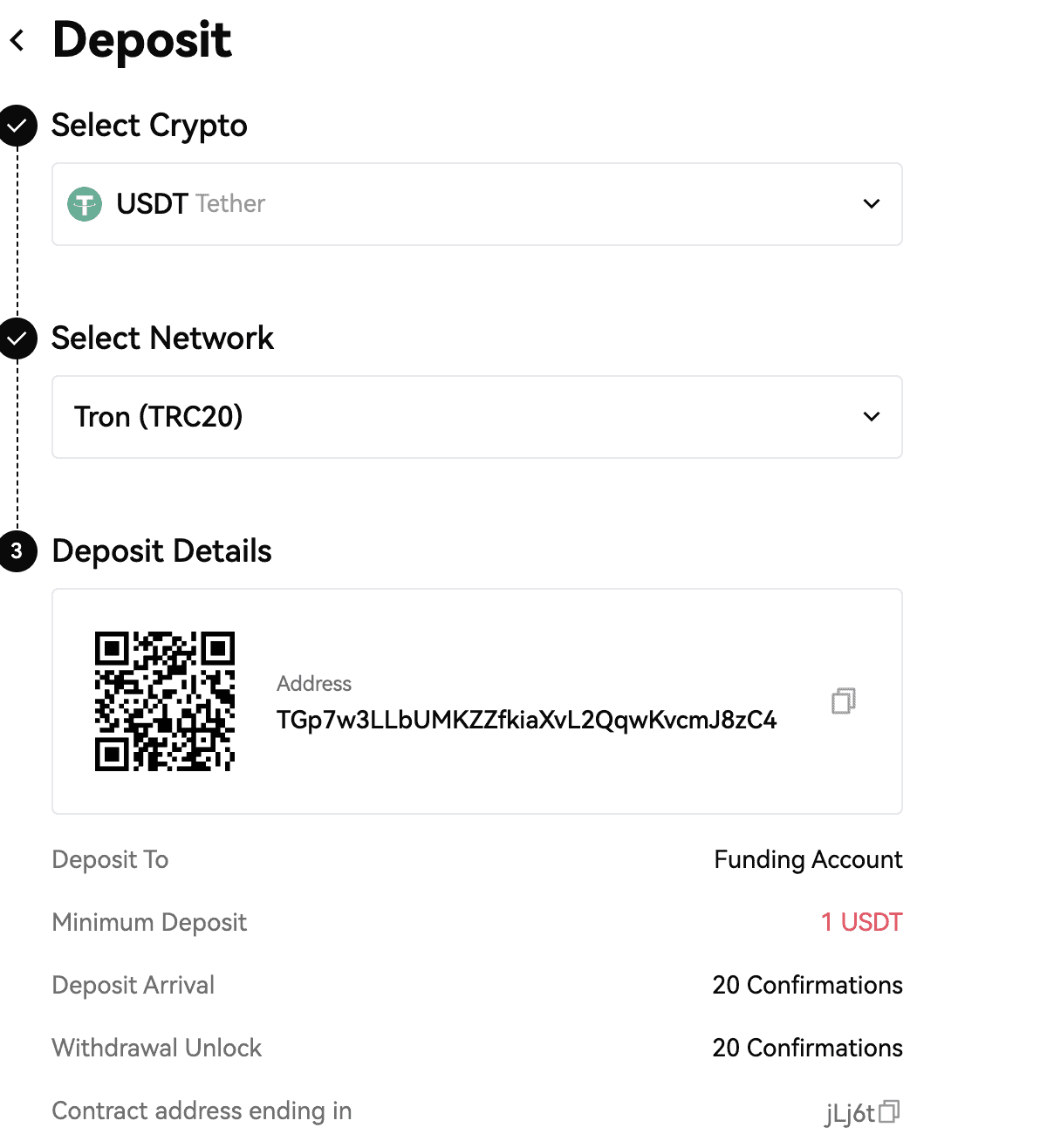 - Puedes depositar cripto de forma manual desde otras direcciones a la cuenta de futuros. O, puede mover fondos desde el spot, earn, o funding wallet a su monedero de futuros en un solo click.