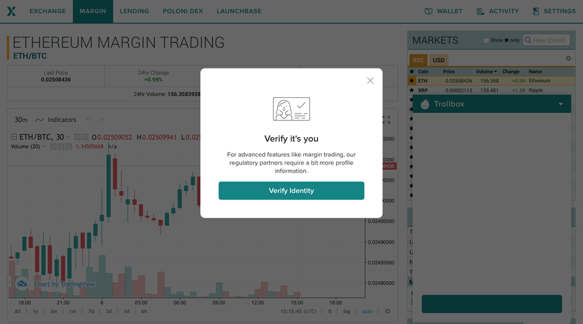 Para el trading con margen, Poloniex ofrece varias cantidades de apalancamiento para criptomonedas. Sin embargo, los usuarios que completen el proceso de verificación podrán acceder a un apalancamiento de hasta 2.5 veces para algunas cripto. No es tan alto como Kraken, pero también evita que los traders asuman demasiados riesgos.