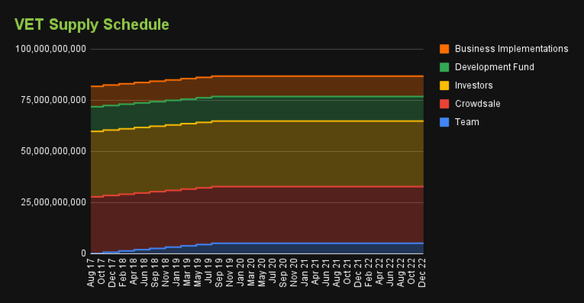 A 25 de diciembre de 2022, VeChain se encuentra entre los 50 proyectos cripto con mayor capitalización de mercado. Esta supera ligeramente los 1174 millones de dólares con una oferta máxima de 86 mil millones de unidades.