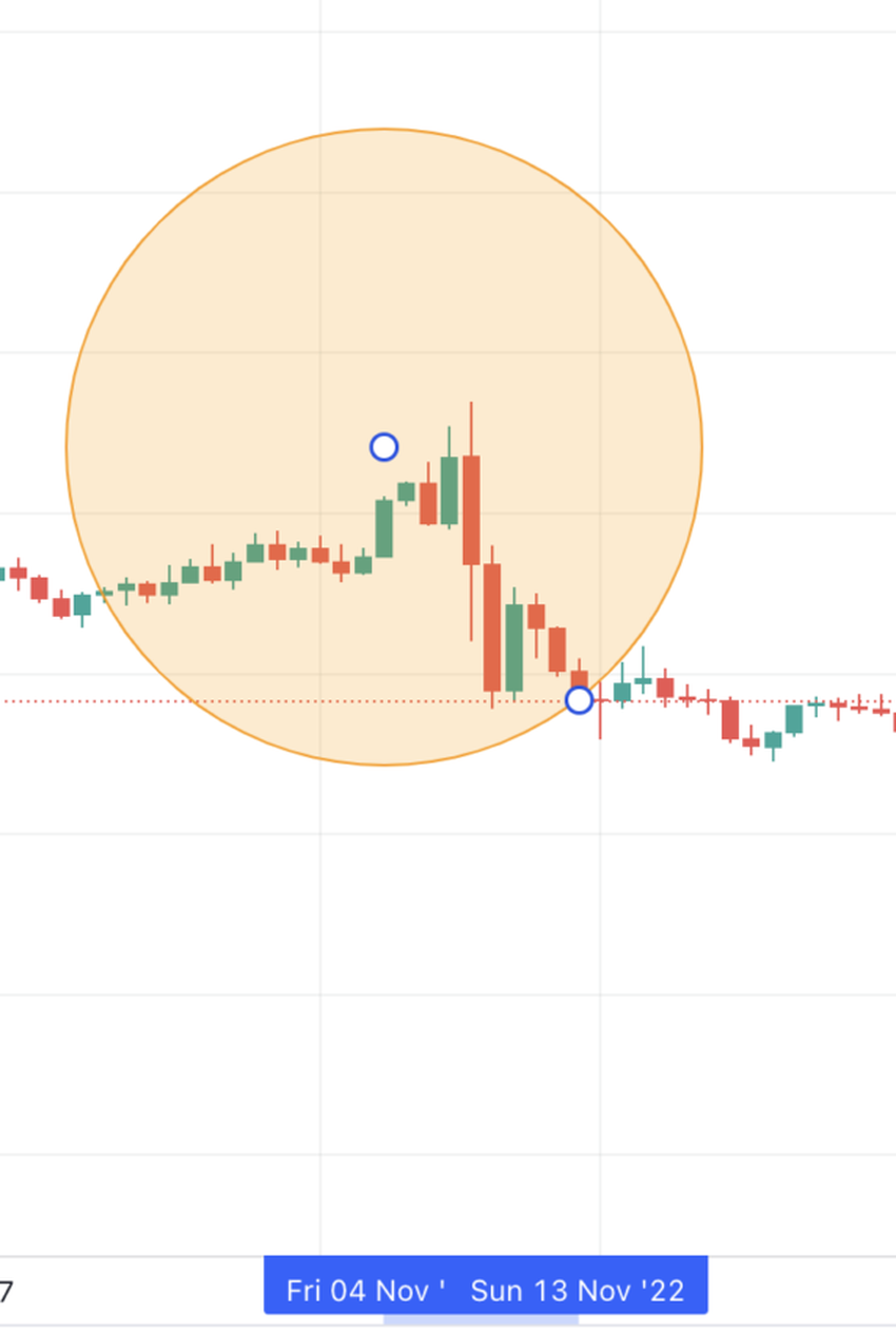 En base a estos datos, podríamos prever un movimiento de entre el 33% y el 52%, probablemente del 42.5%. Hablaríamos de un máximo decreciente en torno a los 5 centavos de dólar, que podría formarse en marzo de 2023.