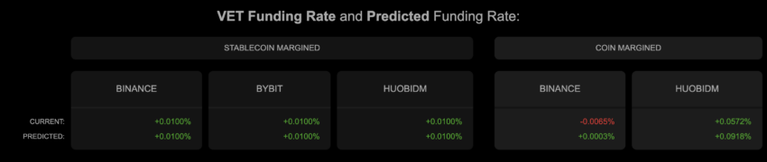 Un funding negativo en los exchanges confirmaría este escenario, pero la mayoría de plataformas presenta ratios positivos. La cuestión es que no se observan repuntes, por lo que el precio del token VET podría moverse horizontalmente por un tiempo.