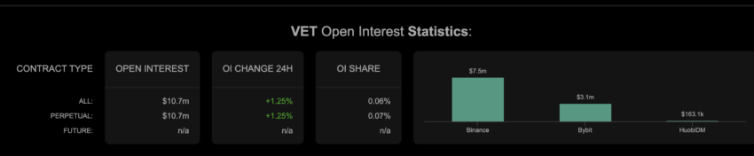 El aumento de operaciones de perpetuos con VET indica que los traders están posicionándose a largo plazo. De ser así, la importancia de obtener previsiones precisas del precio sería mayor para los inversores.