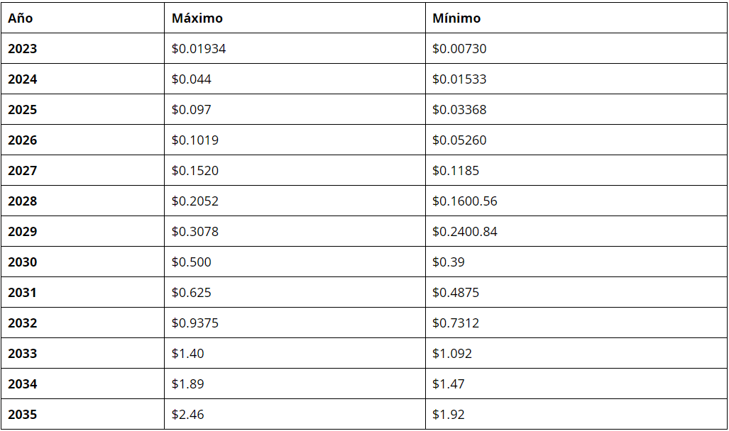 Predicción del precio a largo plazo (hasta 2035)