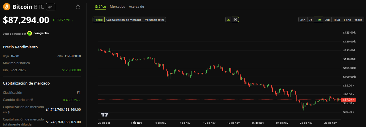 Los analistas interpretan que la apuesta de Bitcoin coincide con una narrativa macroeconómica que favorece un repunte. Tras la caída a 80,000 dólares la semana pasada, el rebote actual se alinea con expectativas de una relajación en la política monetaria. Si la Fed recorta la tasa en diciembre, los activos de riesgo suelen experimentar entradas de capital y aumento de demanda.