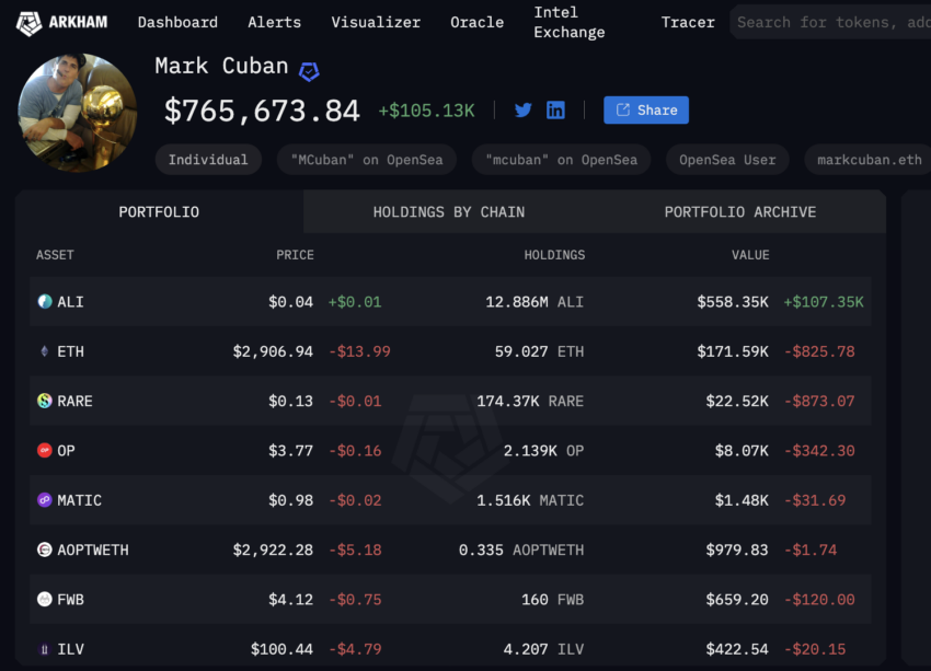 Además, la cartera de Cuban incluye diversas altcoins como SuperRare (RARE) ,Optimism (OP) y Polygon (MATIC), lo que muestra su amplia estrategia de inversión.