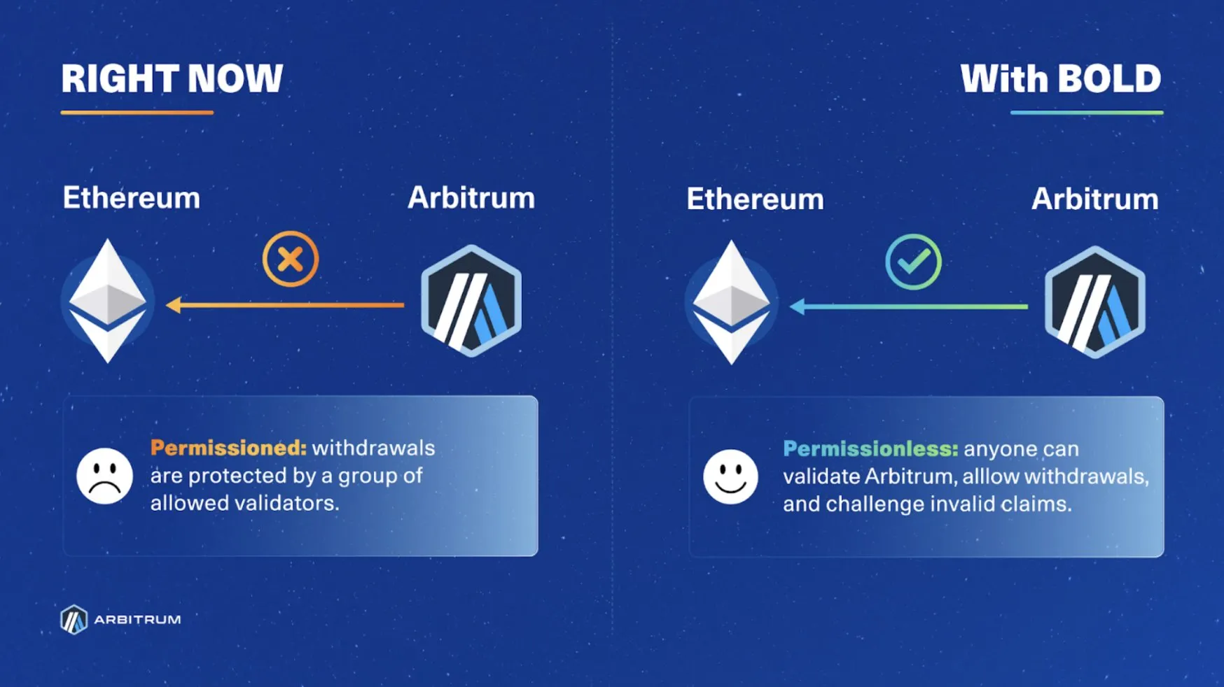 Además, BoLD incluye un período de gracia de dos días para que el Consejo de Seguridad intervenga si es necesario. Este sistema de validación sin permisos es un paso significativo hacia el objetivo de Arbitrum de lograr el estado de Rollup de Etapa 2. Con BoLD, cualquier parte honesta puede validar y vincular sus fondos para publicar afirmaciones precisas del estado de Capa 2 y desafiar a actores maliciosos.