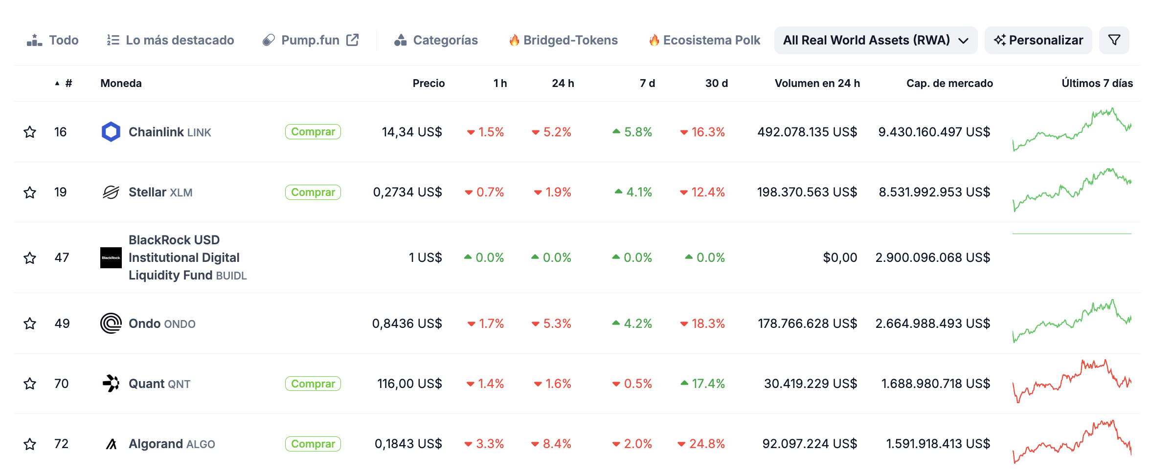 Los tokens más relevantes en este ecosistema incluyen LINK, XLM, PAXG, y QNT, entre otros. Esto subraya el potencial de tokenizar activos como una forma de democratizar la inversión, facilitar el acceso a mercados más amplios y mejorar la liquidez.