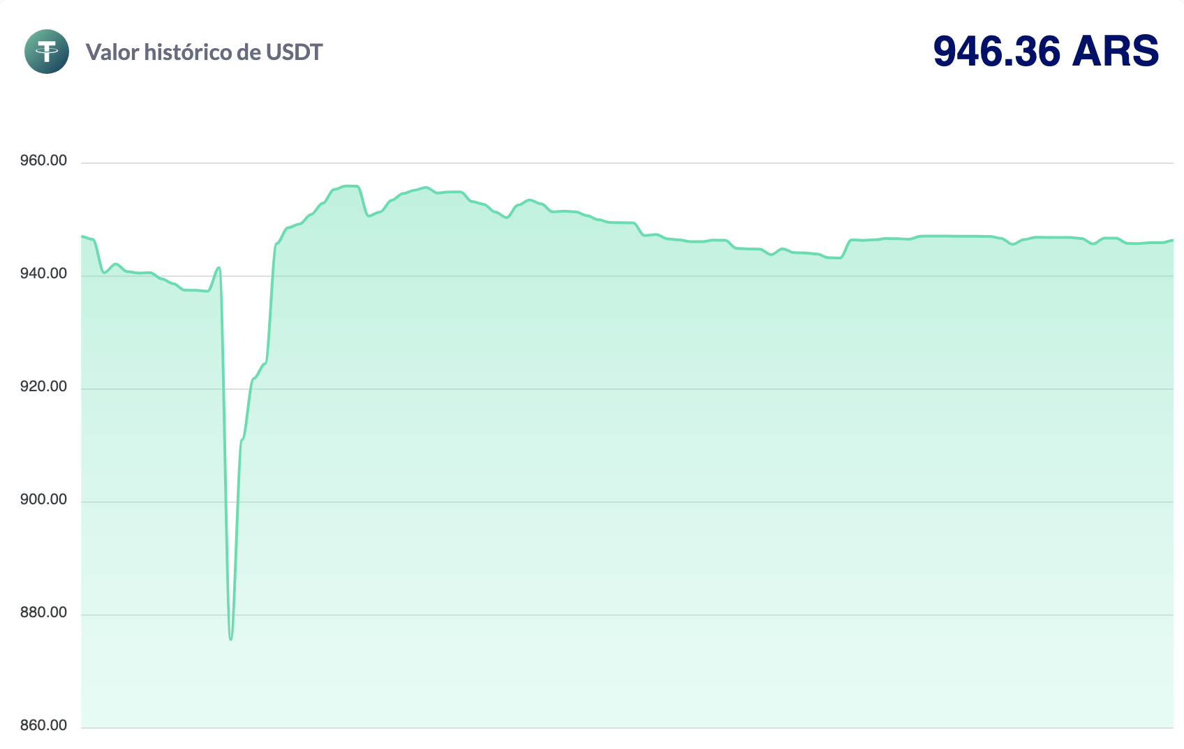 Cualquier operación P2P muestra el verdadero valor actual de USDT (946,36 ARS), que suele estar cercano al precio del dólar blue o ilegal. Ese valor, a comienzos de 2023, rondaba los 386 pesos argentinos. Su crecimiento fue superior al 100%, aunque siempre atado a la evolución de la inflación (120% acumulada durante 2023). Esto concluye que alguien que invirtió en USDT a comienzos de año apenas pudo conservar valor, pero no hacer crecer su dinero.